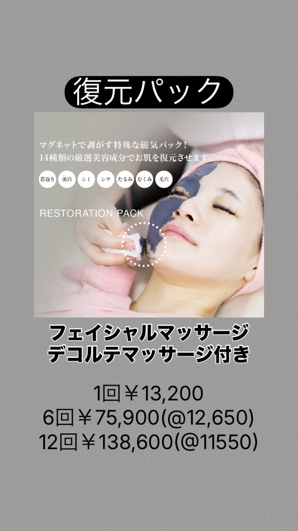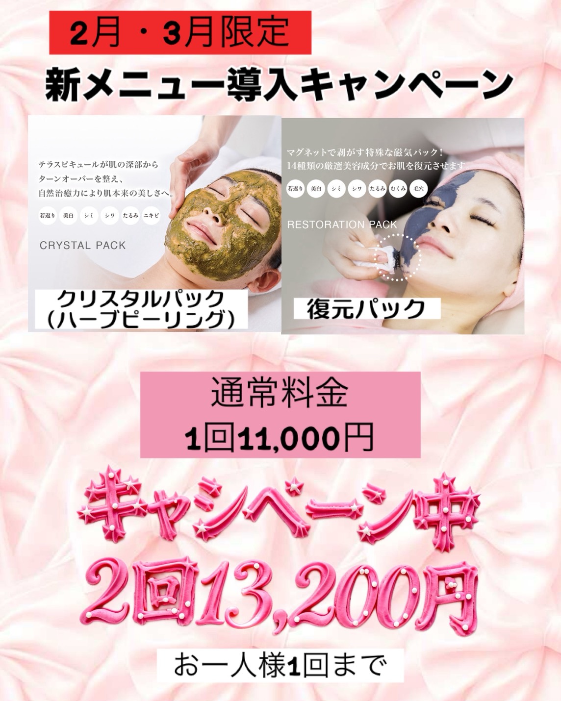 ・クリスタルパック(ハーブピーリング)or復元パック2回